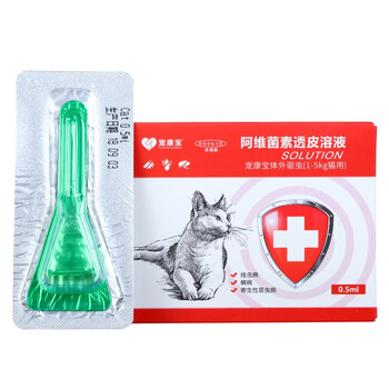 宠康宝 宠物猫体外驱虫喷剂 阿维菌素透皮溶液 除虱跳蚤螨虫蜱虫驱虫剂(1-5kg猫用)0.5ml单支装
