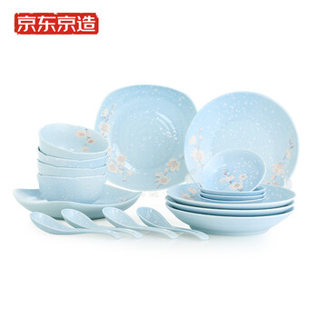 京东京造 陶瓷餐具套装 家用碗碟盘子套装 18头套装餐具-暗香系列