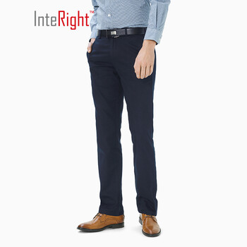 INTERIGHT 桑蚕丝莱赛尔混纺微弹男士商务休闲裤 深蓝色 34码