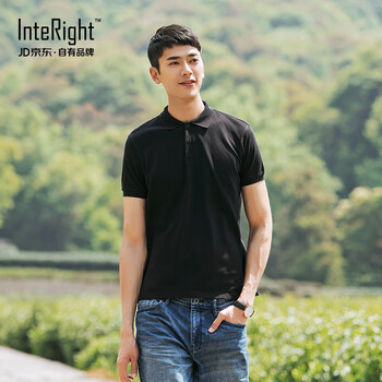 INTERIGHT【京东质造】 50支棉质双珠地免男士商务休闲POLO衫 黑色 XXL码