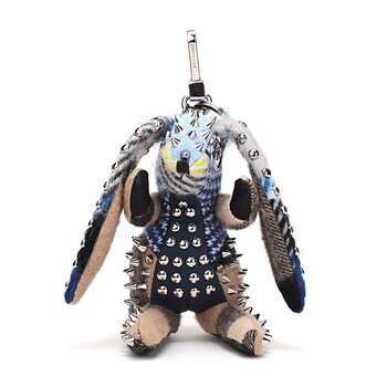 BURBERRY 巴宝莉 女款海军蓝多色拼色织物配皮Vera野兔造型钥匙扣吊饰 80003991