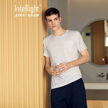 INTERIGHT 男士 全棉休闲圆领短袖T恤+纯棉小毛圈家居短裤 室内户外两相宜 家居服套装 白色/藏青色 L码