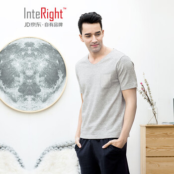 INTERIGHT 男士 全棉休闲圆领短袖T恤+纯棉小毛圈家居短裤 室内户外两相宜 家居服套装 浅麻灰/黑色 L码