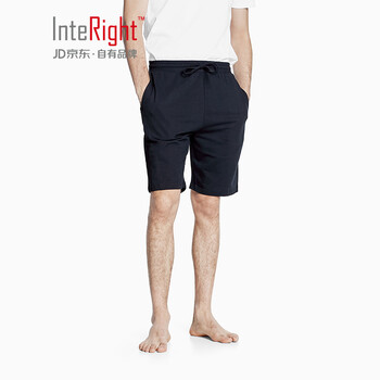 INTERIGHT 男士 休闲纯棉小毛圈家居短裤 室内户外两相宜 藏青色 L码