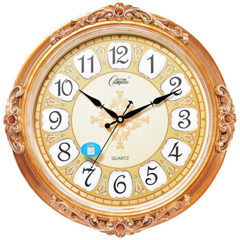 康巴丝(COMPAS)挂钟 客厅欧式静音挂表创意石英客厅卧室简约钟2933 金艺色