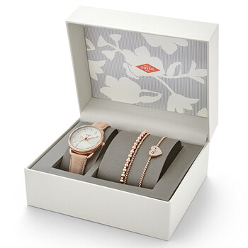 化石(Fossil)手表皮质表带女士手表石英表时尚女表套装ES4021SET