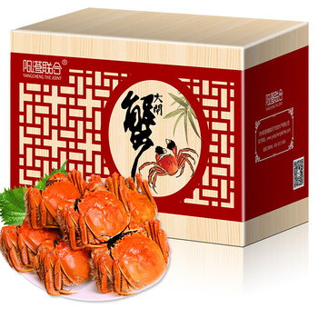 【现货】阳澄联合 六月黄大闸蟹现货螃蟹礼盒2.3-2.0两 8只装 海鲜水产