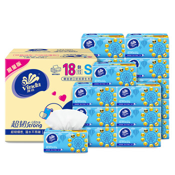 维达(Vinda) 抽纸 emoji超韧限量版3层130抽软抽*18包(小规格) 整箱销售