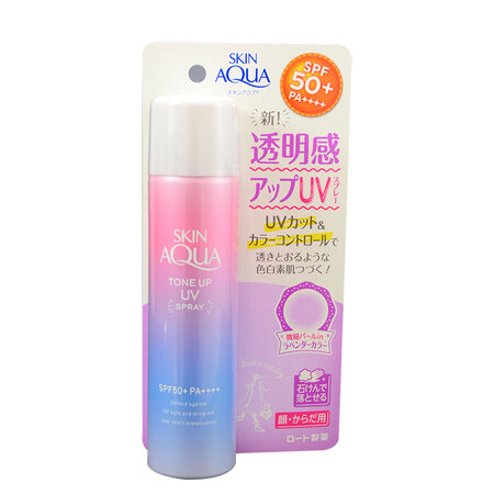 日本进口 乐敦(ROHTO)SKIN AQUA 薰衣草防晒饰底喷雾(彩虹防晒喷雾)70g