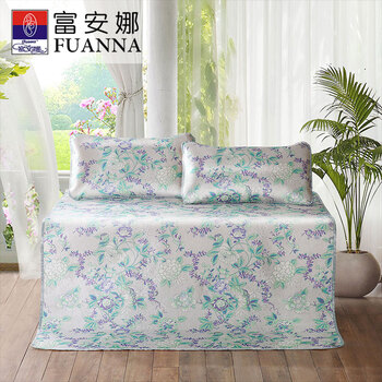 富安娜家纺 凉席冰丝席空调席子三件套装 夏季双人可折叠 幽梦 灰色1米8床