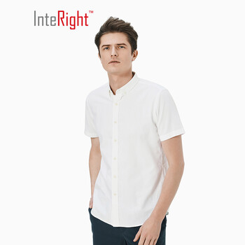 INTERIGHT 吸湿快干男士牛津纺短袖衬衫 白色 40码