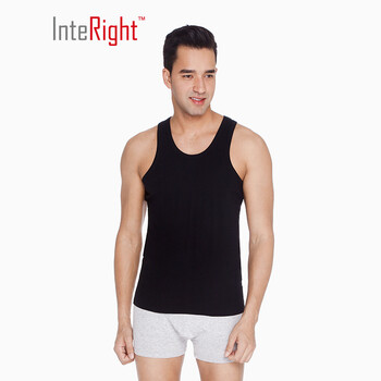 INTERIGHT背心男 全棉罗纹弹力背心2条装 黑色+白色 XL