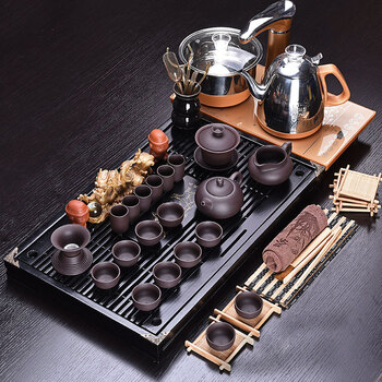 豪峰整套紫砂茶具套装家用实木茶盘托盘茶道茶壶茶海茶台茶杯四合一全自动电器【黑色马到成功+紫砂+C电器】
