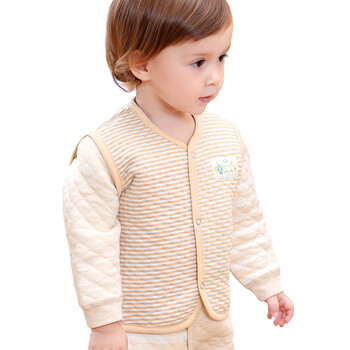 象宝宝(elepbaby)婴儿背心 宝宝保暖马甲春秋外出服 儿童空气层彩棉条纹坎肩66码