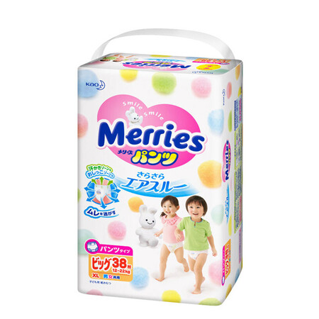 花王(Merries)妙而舒 学步裤拉拉裤 XL 38片 12-22kg 透气原装进口 日本工厂直供
