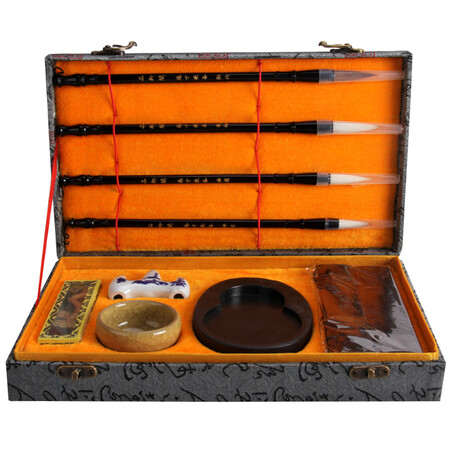 绍泽文化 文房四宝毛笔书法套装 (毛笔/墨锭/石砚/笔架/水碗/镇尺)
