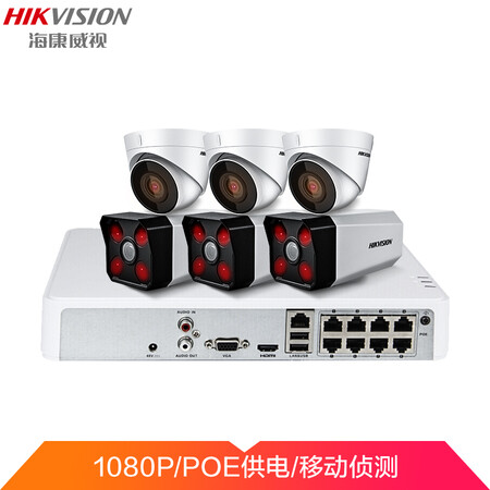 海康威视摄像头 监控设备套装 200万网络高清监控摄像头 红外50米 带POE供电 6路带1TB硬盘