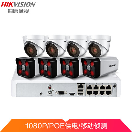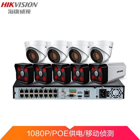 海康威视摄像头 监控设备套装 200万网络高清监控摄像头 红外50米 带POE供电 8路带1TB硬盘