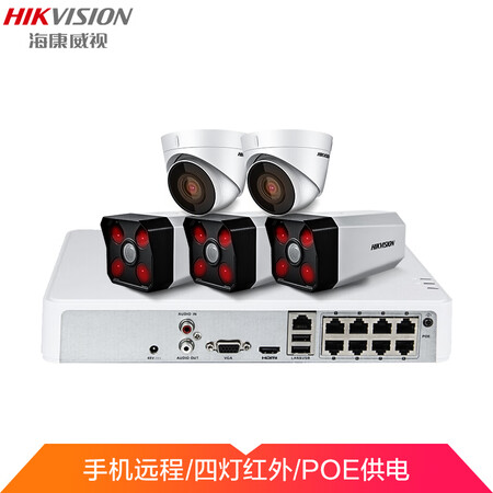 海康威视摄像头 监控设备套装 200万网络高清监控摄像头 红外50米 带POE供电 5路带2TB硬盘