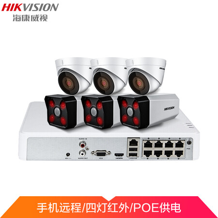 海康威视摄像头 监控设备套装 200万网络高清监控摄像头 红外50米 带POE供电 6路带4TB硬盘