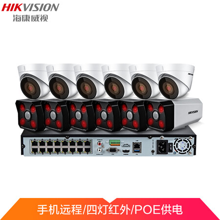 海康威视摄像头 监控设备套装 200万网络高清监控摄像头 红外50米 带POE供电 12路带4TB硬盘