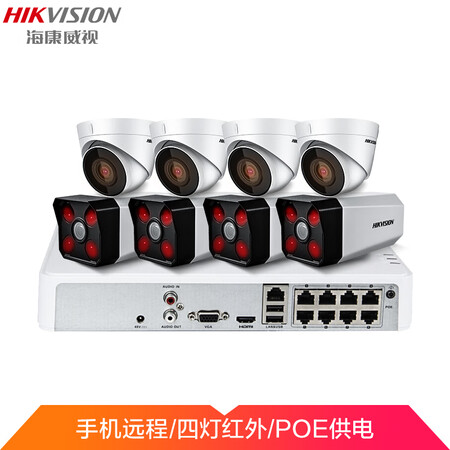 海康威视摄像头 监控设备套装 200万网络高清监控摄像头 红外50米 带POE供电 8路带4TB硬盘
