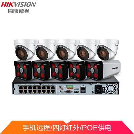 海康威视摄像头 监控设备套装 200万网络高清监控摄像头 红外50米 带POE供电 10路不带硬盘