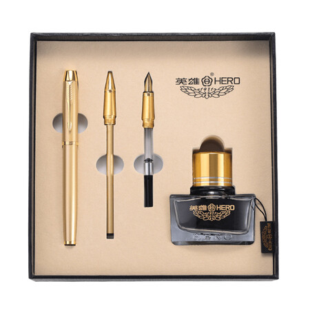 英雄(HERO)1801香槟金IM金属杆 铱金钢笔/墨水笔/宝珠笔 三合一组合套装