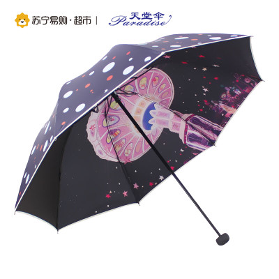 天堂伞 30135ELCJ 碰击布黑胶双面转印三折蘑菇太阳伞晴雨伞