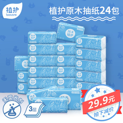 植护 原木婴儿柔软亲肤抽纸 家庭餐巾纸整箱装3层110抽*24包