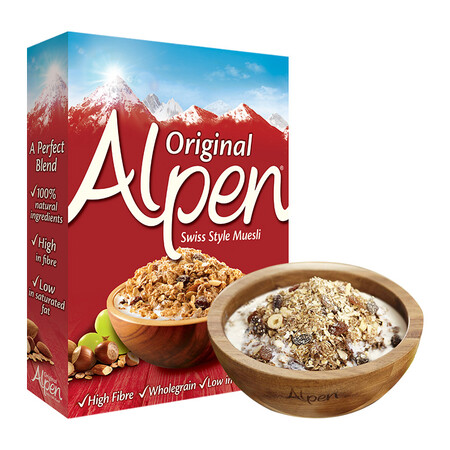 英国原装进口 欧倍(Alpen)瑞士风味燕麦干果早餐(原味)全谷物高纤维营养早餐麦片 375g