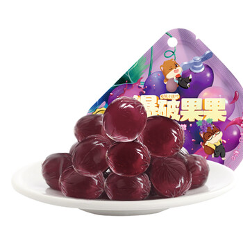 三只松鼠 休闲零食爆浆果汁软糖果味橡皮糖 葡萄味爆破果果40g