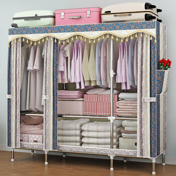 梦卡莱 布衣柜钢管加厚加粗25mm高承重简易柜子衣柜 衣橱收纳 组装单人简易衣柜 防尘防潮1.5米