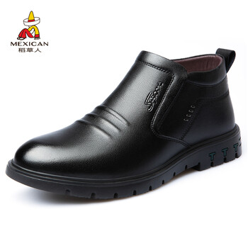 稻草人 MEXICAN 高帮商务休闲皮鞋男士正装保暖加绒套脚靴子英伦百搭 AZ1818 黑色 40