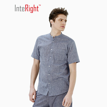 INTERIGHT短袖衬衫男 麻棉混纺休闲立领衬衫 牛仔蓝 M