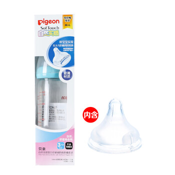 贝亲(Pigeon)自然实感宽口径玻璃奶瓶奶嘴套装240ml+M/L PL336