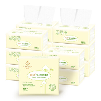 润本(RUNBEN)婴儿纯棉柔巾100抽×12包 儿童宝宝干湿巾两用巾