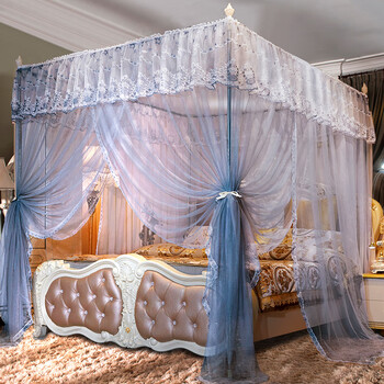 南极人NanJiren 蚊帐 三开门不锈钢宫廷落地家用蚊帐 灰 1.8米