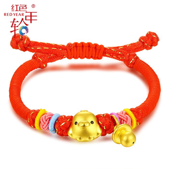 红色年轮 足金转运珠红绳手链 黄金奶嘴生肖鸡 宝宝满月周岁礼物 总金重约1.66g
