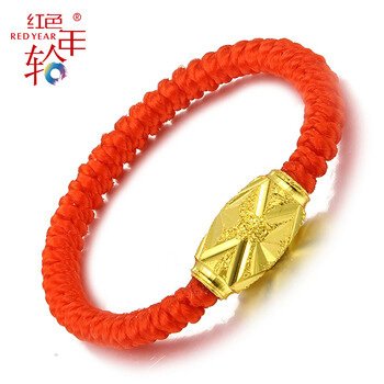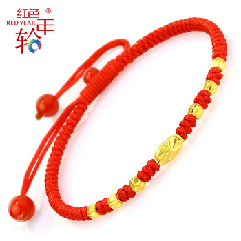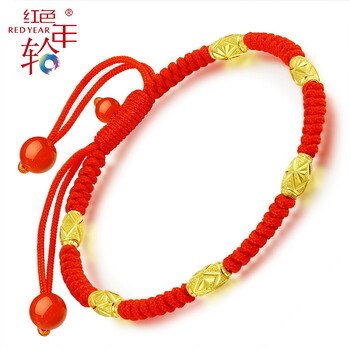 红色年轮 黄金转运珠 足金红绳手链本命年路路通宝宝首饰男女礼物