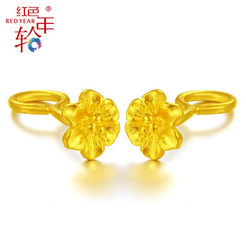红色年轮 黄金耳钉 女款韩版时尚百搭耳环 足金桃花耳饰品生日送礼 桃花耳钉 一对总金重约0.8g