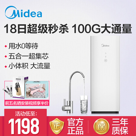 美的(Midea) 净水器MRO1890-100G禅意橱下家用反渗透直饮纯水机100G大通量过滤器 储水罐版超集芯